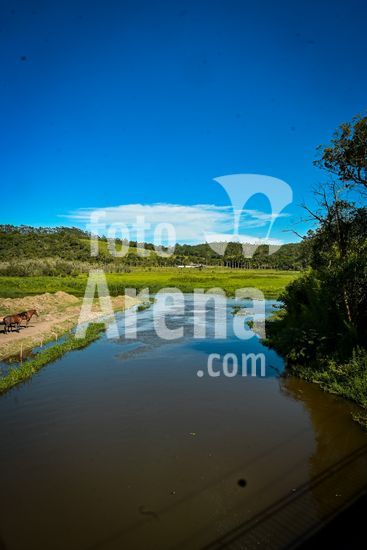 2862426 Trecho rural do rio Tiete no município de Biritiba Mirim. O rio Tietê ainda preserva características de seu curso original. Longe dos trechos mais impactados, as águas seguem entre áreas de mata e uso rural, evidenciando a importância da proteção das nascentes e dos trechos superiores para o equilíbrio ambiental da bacia hidrográfica. Os trechos de cabeceira, como o localizado em Biritiba Mirim, exercem papel fundamental na manutenção do regime hídrico, na recarga de aquíferos e na diluição de poluentes ao longo da bacia. Biritiba Mirim, SP.