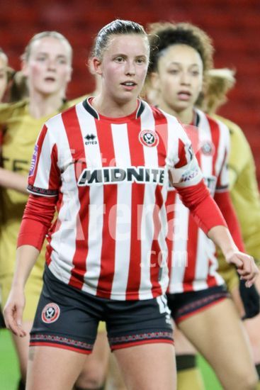 2867751 Ella Kinzett (4 Sheffield United Women) durante a partida da Barclays Women's Super League 2 entre Sheffield United e Crystal Palace em Bramall Lane em Sheffield, Inglaterra, em 12 de janeiro de 2026. (Sean Chandler / SPP)