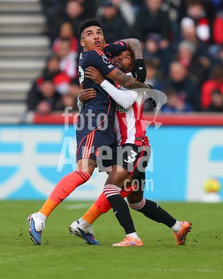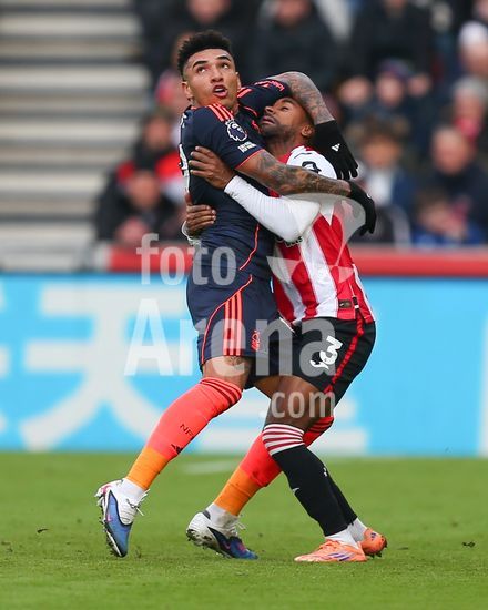 2873633 Londres, Inglaterra, 25 de janeiro de 2026: Igor Jesus (19 Nottingham Forest) agarra Rico Henry (3 Brentford) durante o jogo da Premier League entre Brentford e Nottingham Forest no Gtech Community Stadium em Londres, Inglaterra. (Jay Patel/Sports Press Photo/SPP)