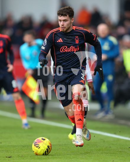 2873739 Londres, Inglaterra, 25 de janeiro de 2026: Neco Williams (3 Nottingham Forest) durante o jogo da Premier League entre Brentford e Nottingham Forest no Gtech Community Stadium em Londres, Inglaterra. (Jay Patel/Sports Press Photo/SPP)