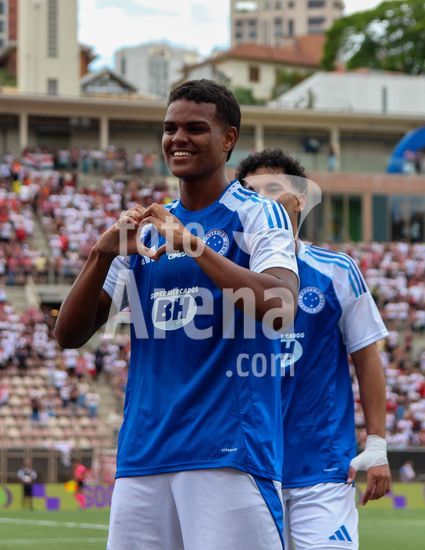 2873911 O Cruzeiro enfrentou o São Paulo F.C na final da Copinha Sil 2026 no estádio do Pacaembu em São Paulo neste domingo (25) . O time saiu na frente com 1x0 no primeiro tempo e o São Paulo buscou o empate no final do 1º tempo , já no segundo tempo o Cruzeiro fez o 2º gol e segurou a viória até o final , levando o Bi-Campeonato da Copinha. Na foto jogadores do Cruzeiro comemorando gol