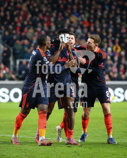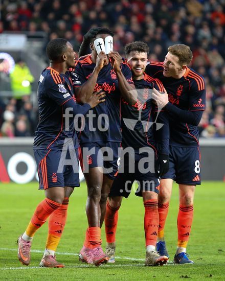 2874015 Londres, Inglaterra, 25 de janeiro de 2026: Taiwo Awoniyi (9, Nottingham Forest) comemora apos marcar o gol que colocou seu time em vantagem de 2 a 0 durante a partida da Premier League entre Brentford e Nottingham Forest no Gtech Community Stadium, em Londres, Inglaterra. (Jay Patel/Sports Press Photo/SPP)