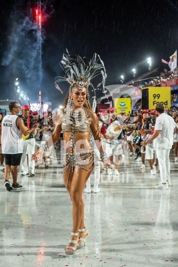 2878226 Cantora Iza, Rainha de bateria da Imperatriz Leopoldinense nos ensaios técnicos do Rio Carnaval 2026 durante chuva forte na Marquês de Sapucaí neste domingo (01).