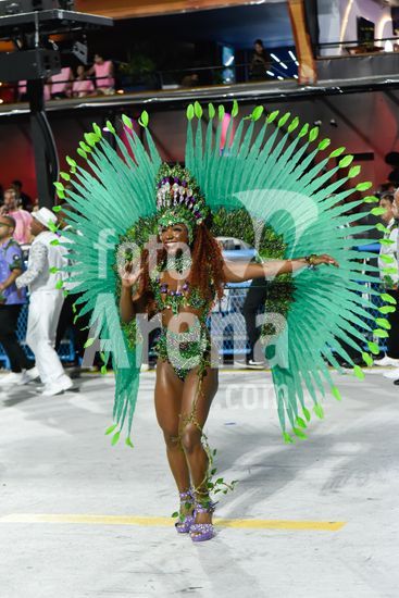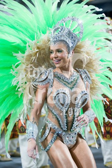 2886181 As escolas de samba desfilam no Sambódromo do Anhembi nesta sábado (14), em São Paulo. Na foto, a escola Camiseta Verde e Branco, com a rainha da bateria Sophia Ferro.