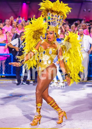 2885632 As escolas de samba desfilam no Sambódromo do Anhembi nesta sábado (14), em São Paulo. Na foto, a escola Águia de Ouro, com a Rainha de bateria: Renata Spalicci. Enredo: Mokum Amsterdã ? O vôo da Águia à cidade libertária