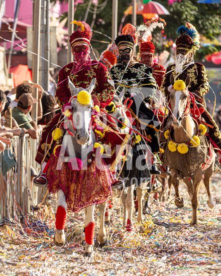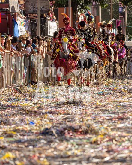 2887275 Cavaleiroa e Amazonas desfilam na Cavalhada, conhecida também como "Carnaval a Cavalo", em Bonfim, Minas Gerais. A Cavalhada é uma tradição centenária que basicamente se resume em um desfile cultural e familiar, com cavaleiros fantasiados que percorrem a cidade, jogando confetes e serpentinas para quem acompanha o desfile que por sua vez também jogam as serpentinas de volta. Bonfim, MG.