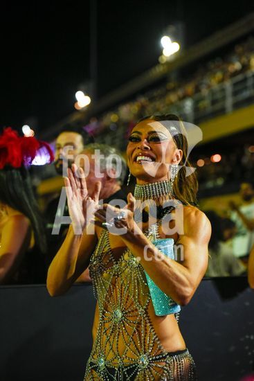 2889131 Atriz juliana Paes assistindo o desfile da Mocidade Independente de Padre Miguel que desfilou nesta Segunda, dia (16), com o grupo especial das escolas de samba que tentam o título de campeã do carnaval 2026.