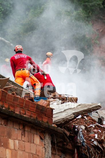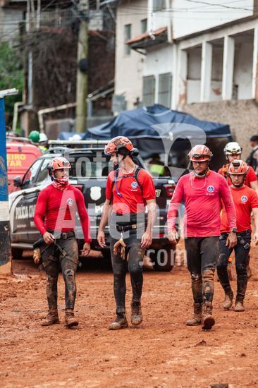 2895132 Corpo de Bombeiros fazem trabalho de busca de vítimas fatais e possíveis sobreviventes do deslizamento de terra causado pelas fortes chuvas que atingem a região do Parque Burnier, localizado no município de Juiz de Fora, no estado de Minas Gerais.
