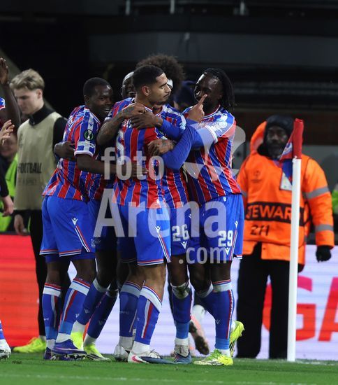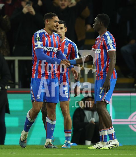 2895199 LONDRES, INGLATERRA, 26 DE FEVEREIRO: GOL 1-0, Maxence Lacroix, do Crystal Palace, comemora o gol com Evann Guessand, tambem do Crystal Palace, apos marcar o gol que colocou o Crystal Palace em vantagem por 1 a 0 durante a partida entre Crystal Palace FC e HSK Zrinjski Mostar, valida pela segunda mao do playoff da Liga Conferencia da UEFA 2025/2026, no Estadio Selhurst Park, em Londres, Inglaterra, em 26 de fevereiro. (Daniel Weir/SPP)