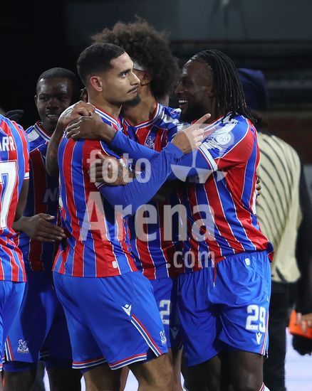 2895198 LONDRES, INGLATERRA, 26 DE FEVEREIRO: GOL 1-0, Maxence Lacroix, do Crystal Palace, comemora o gol com Ismaila Sarr, tambem do Crystal Palace, apos marcar o gol que colocou o Crystal Palace em vantagem por 1 a 0 durante a partida entre Crystal Palace FC e HSK Zrinjski Mostar, valida pela segunda mao do playoff da Liga Conferencia da UEFA 2025/2026, no Estadio Selhurst Park, em Londres, Inglaterra, em 26 de fevereiro. (Daniel Weir/SPP)