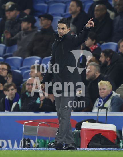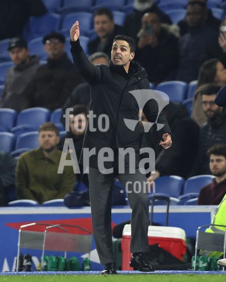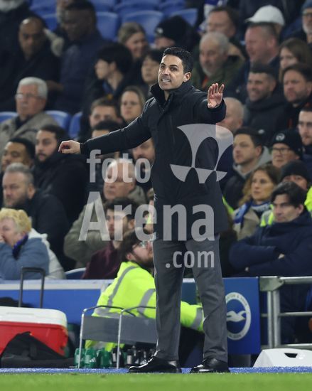 2898310 BRIGHTON, INGLATERRA, 4 DE MARCO: Mikel Arteta, tecnico do Arsenal, da instrucoes aos seus jogadores durante a partida entre Brighton & Hove Albion FC e Arsenal FC, valida pela Premier League, no AMEX Community Stadium, em Brighton, Inglaterra, no dia 4 de marco. (Foto de Daniel Weir) (Daniel Weir/Sports Press Photo / SPP)