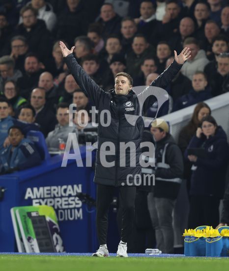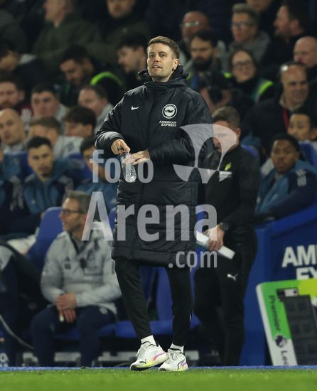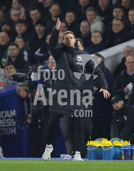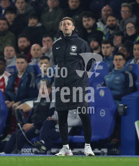 2898337 BRIGHTON, INGLATERRA, 4 DE MARCO: Fabian Hurzeler, treinador do Brighton & Hove Albion, da instrucoes aos seus jogadores durante a partida entre Brighton & Hove Albion FC e Arsenal FC, valida pela Premier League, no AMEX Community Stadium, em Brighton, Inglaterra, no dia 4 de marco. (Foto de Daniel Weir) (Daniel Weir/Sports Press Photo / SPP)