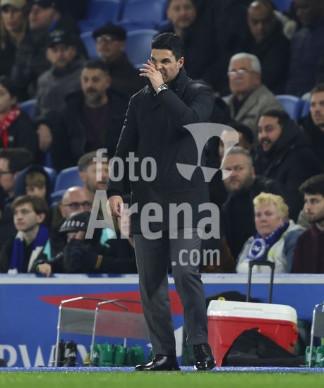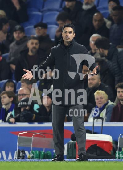2898333 BRIGHTON, INGLATERRA, 4 DE MARCO: Mikel Arteta, tecnico do Arsenal, demonstra frustracao durante a partida entre Brighton & Hove Albion FC e Arsenal FC, valida pela Premier League, no AMEX Community Stadium, em Brighton, Inglaterra, no dia 4 de marco. (Foto de Daniel Weir) (Daniel Weir/Sports Press Photo / SPP)