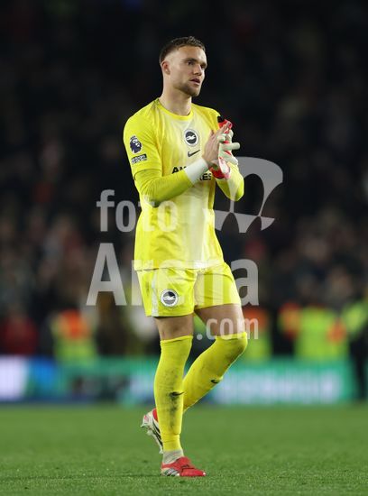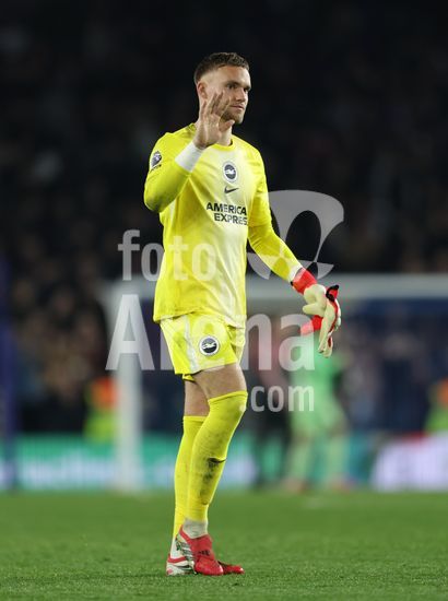 2898348 BRIGHTON, INGLATERRA, 4 DE MARCO: Bart Verbruggen, do Brighton & Hove Albion, aplaude os torcedores do Brighton & Hove Albion apos a derrota por 1 a 0 durante a partida entre Brighton & Hove Albion FC e Arsenal FC pela Premier League, no AMEX Community Stadium, em Brighton, Inglaterra, em 4 de marco. (Foto de Daniel Weir) (Daniel Weir/Sports Press Photo / SPP)
