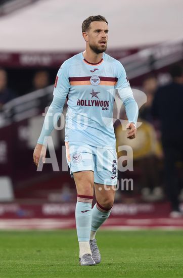 2902074 LONDRES, INGLATERRA, 9 DE MARCO: Jordan Henderson, do Brentford, durante a partida entre West Ham United FC e Brentford FC, valida pela 5ª rodada da Copa da Inglaterra (Emirates FA Cup), no Estadio Olimpico de Londres, em Londres, Inglaterra, em 9 de marco. (Daniel Weir/SPP)
