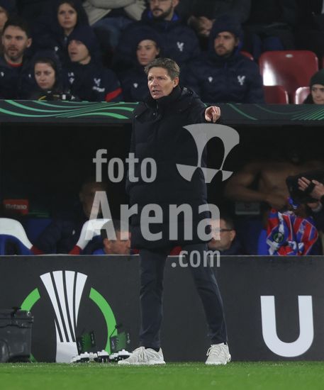 2903654 LONDRES, INGLATERRA, 12 DE MARCO: Oliver Glasner, treinador do Crystal Palace, da instrucoes aos seus jogadores durante a partida entre Crystal Palace FC e AEK Larnaca FC, valida pela Liga Conferencia da UEFA, no jogo de ida das oitavas de final, no Estadio Selhurst Park, em Londres, Inglaterra, em 12 de marco. (Daniel Weir/SPP)