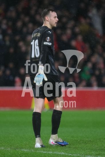 2903529 Matz Sels, do Nottingham Forest, durante a partida de futebol da Liga Europa da UEFA entre Nottingham Forest e FC Midtjylland no City Ground, em Nottingham. (Paul Bonser / Sports Press Photo / SPP)