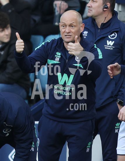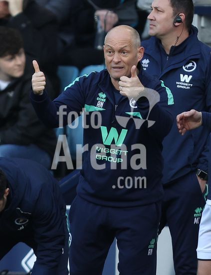 2904296 LONDRES, INGLATERRA, 14 DE MARCO: Alex Neil, treinador do Millwall, faz um sinal de positivo para seus jogadores durante a partida entre Millwall FC e Blackburn Rovers FC, valida pelo Sky Bet Championship, no Estadio The New Den, em Londres, Inglaterra, em 14 de marco. (Foto de Daniel Weir) (Daniel Weir/Sports Press Photo / SPP)