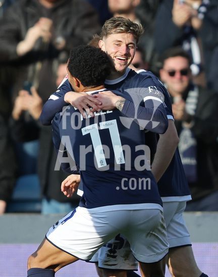 2904288 LONDRES, INGLATERRA, 14 DE MARCO: GOL 1-0, Luke Cundle, do Millwall, comemora o gol com Femi Azeez, tambem do Millwall, apos marcar o gol que colocou o Millwall em vantagem por 1 a 0 durante a partida entre Millwall FC e Blackburn Rovers FC, valida pelo Sky Bet Championship, no Estadio The New Den, em Londres, Inglaterra, em 14 de marco. (Foto de Daniel Weir) (Daniel Weir/Sports Press Photo / SPP)
