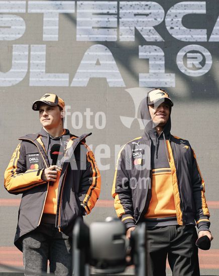 2904648 XANGAI, CHINA - 14 DE MARCO: Oscar Piastri, da Australia e da equipe McLaren Mastercard Formula 1, e Lando Norris, da Gra-Bretanha e da equipe McLaren Mastercard Formula 1, na area reservada aos fas antes do Grande Premio da China de Formula 1 no Circuito Internacional de Xangai, em 14 de marco de 2026, em Xangai, China. (Foto de Paddocker) (Paddocker/Sports Press Photo / SPP)