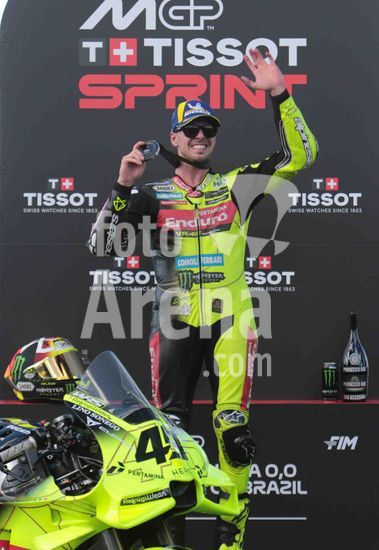2909865 MotoGP Brasil, realizado no Autódromo Internacional de Goiânia, nos dias 20/21 e 22 de março de 2026. Foto do piloto Fabio Di Giannantonio comemorando o segundo lugar na corrida sprint.