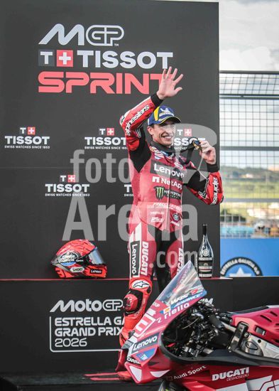 2909867 MotoGP Brasil, realizado no Autódromo Internacional de Goiânia, nos dias 20/21 e 22 de março de 2026. Foto do piloto Marc Márquez comemorando a vitória na primeira corrida sprint.