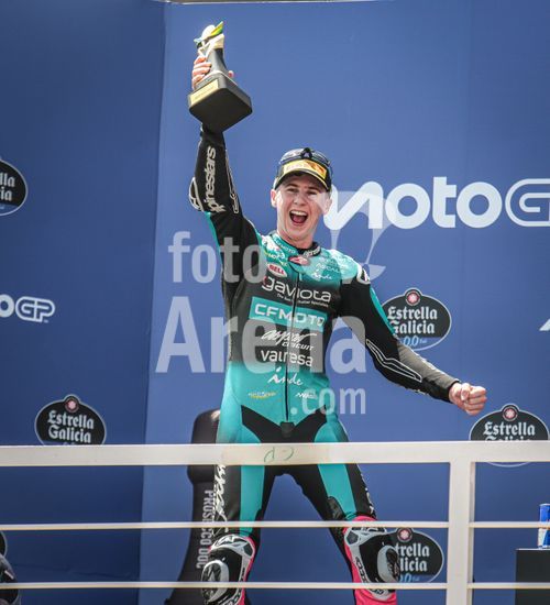 2910339 MotoGP Brasil, realizado no Autódromo Internacional de Goiânia, nos dias 20/21 e 22 de março de 2026. Foto do piloto Maximo Quiles recebendo a premiação pela conquista do primeiro lugar na corrida da categoria Moto3.