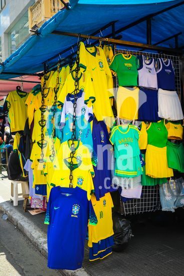 2911514 Comércio popular na região da rua 25 de Março, no centro de São Paulo, vende camisetas e produtos da seleção brasileira em meio à proximidade da Copa do Mundo de 2026. A área é um dos principais polos de compras populares da capital paulista.