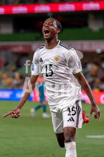 2915645 MELBOURNE, AUSTRALIA - 31 DE MARCO: Arjany Martha, de Curacao, comemora o primeiro gol de sua equipe durante a partida da FIFA Series 2026 Australia entre Australia e Curacao no AAMI Park, em 31 de marco de 2026, em Melbourne, Australia. (Noe Llamas / SPP)