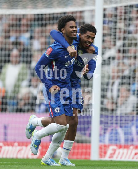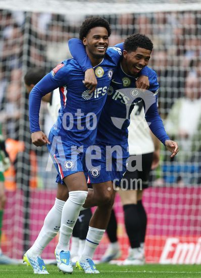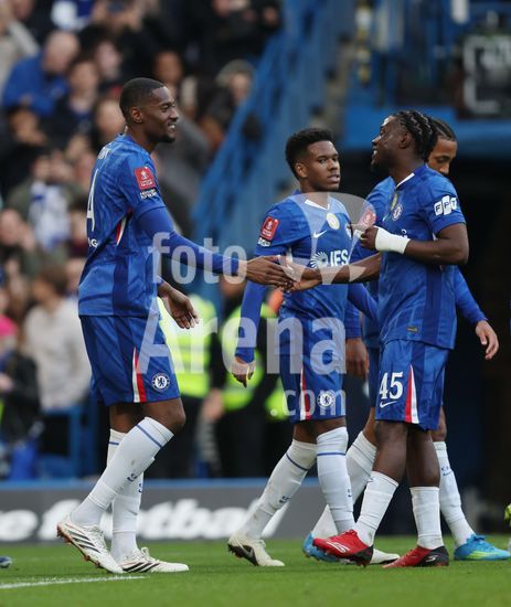 2918836 LONDRES, INGLATERRA, 4 DE ABRIL: GOL 4-0, Tosin Adarabioyo, do Chelsea, comemora com Romeo Lavia, tambem do Chelsea, apos marcar o gol que colocou o Chelsea em vantagem de 4 a 0 durante a partida entre Chelsea FC e Port Vale FC, valida pelas quartas de final da Copa da Inglaterra (Emirates FA Cup), no Estadio Stamford Bridge, em Londres, Inglaterra, em 4 de abril. (Daniel Weir/Sports Press Photo / SPP)