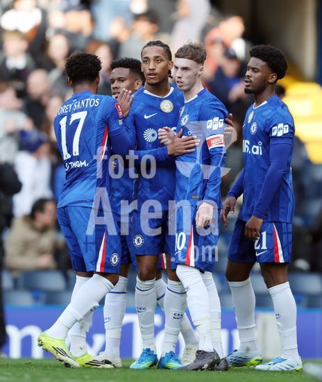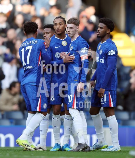 2918827 LONDRES, INGLATERRA, 4 DE ABRIL: GOL 2-0, Joao Pedro, do Chelsea, comemora com Cole Palmer, tambem do Chelsea, apos marcar o segundo gol da equipe, durante a partida entre Chelsea FC e Port Vale FC, valida pelas quartas de final da Copa da Inglaterra (Emirates FA Cup), no Estadio Stamford Bridge, em Londres, Inglaterra, em 4 de abril. (Daniel Weir/Sports Press Photo / SPP)