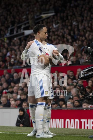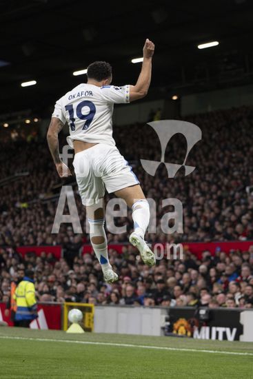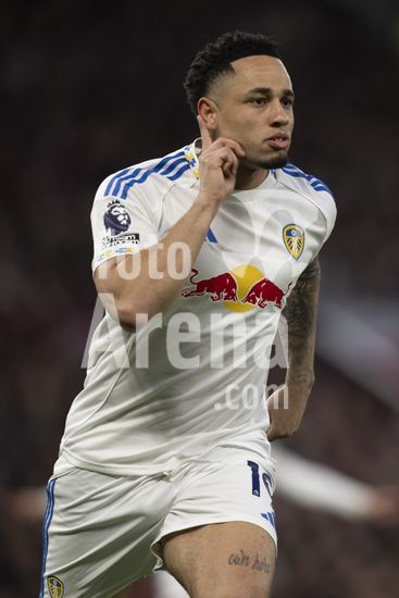2924211 MANCHESTER, INGLATERRA - 13 DE ABRIL: Noah Okafor, do Leeds United, comemora apos marcar o segundo gol da equipe durante a partida da Premier League 2025/26 entre Manchester United e Leeds United, no Old Trafford, em Manchester, em 13 de abril de 2026. (Will Palmer/SPP)