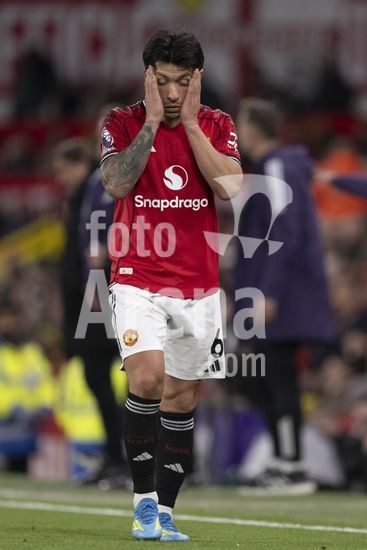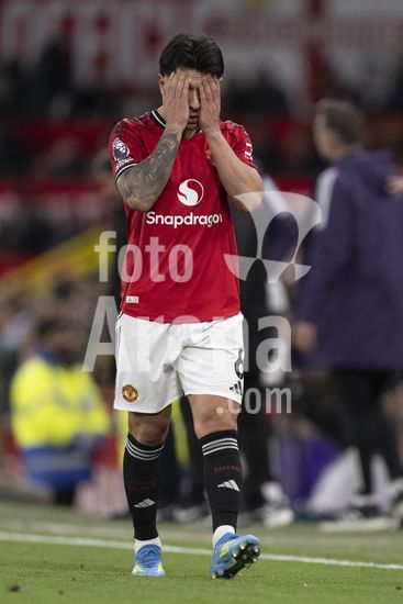 2924217 MANCHESTER, INGLATERRA - 13 DE ABRIL: Lisandro Martinez, do Manchester United, reage apos ser expulso durante uma partida da Premier League 2025/26 entre Manchester United e Leeds United no Old Trafford, em Manchester, em 13 de abril de 2026. (Will Palmer/SPP)