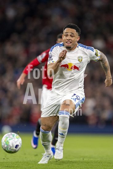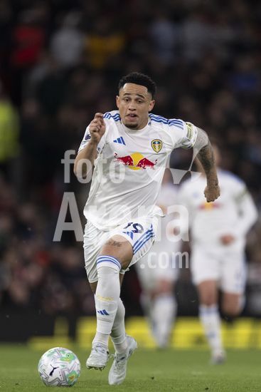 2924228 MANCHESTER, INGLATERRA - 13 DE ABRIL: Noah Okafor, do Leeds United, corre com a bola durante uma partida da Premier League 2025/26 entre Manchester United e Leeds United no Old Trafford, em Manchester, em 13 de abril de 2026. (Will Palmer/SPP)