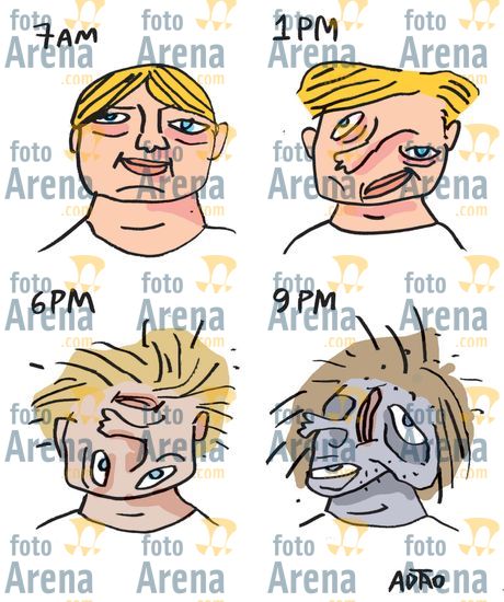 aicoti24006 ADÃO ITURRUSGARAI, COTIDIANO, CORREIO ELEGANTE, 12.06.2024.Sem diálogo7am. 1pm. 6pm. 9pm.Interpretação: Homem muda de fisionomia conforme passa os horários.