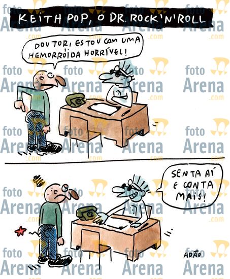 aikp23007 ADÃO ITURRUSGARAI, KEITH POP, CORREIO ELEGANTE, 04/07/2023.DiálogoKeith Pop, o Dr. Rock 'n' Roll.- Doutor, estou com uma hemorróida horrível!- Senta aí e conta mais!