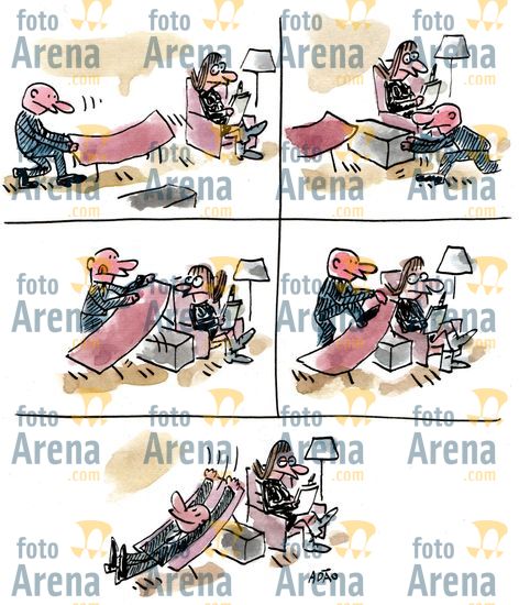 aipsic24003 ADÃO ITURRUSGARAI, PSICANÁLISE, CORREIO ELEGANTE, 04.02.2024.Sem diálogoInterpretação: Homem coloca o divã como escorregador.