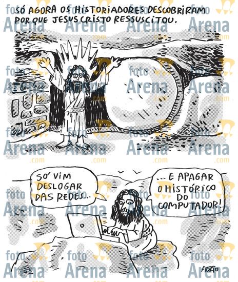 aireli24004 ADÃO ITURRUSGARAI, RELIGIÃO, CORREIO ELEGANTE, 08.10.2024.DiálogoSó agora os historiadores descobriram porque Jesus Cristo ressuscitou.- Só vim deslogar das redes e apagar o histórico do computador!