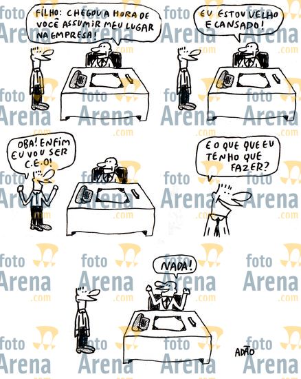 aisoc24073 ADÃO ITURRUSGARAI, SOCIEDADE, CORREIO ELEGANTE, 21.11.2024.Diálogo- Filho: chegou a hora de você assumir meu lugar na empresa! Eu estou velho e cansado!- Oba! Enfim eu vou ser C.E.P! E o que eu tenho que fazer?- Nada!