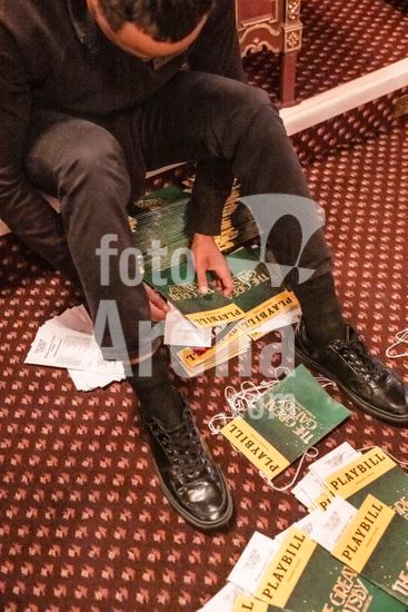 ny281025215013 Michael Singleton, an usher at the musical ?The Great Gatsby,? stuffs a cast list with the latest changes into Playbills at the Broadway Theater in New York, Oct. 27, 2025. Broadway plans to replace the cast-change slips that are stuffed into Playbills with QR codes. Some understudies and theater buffs will mourn their loss. (Sara Krulwich/The New York Times/Fotoarena)