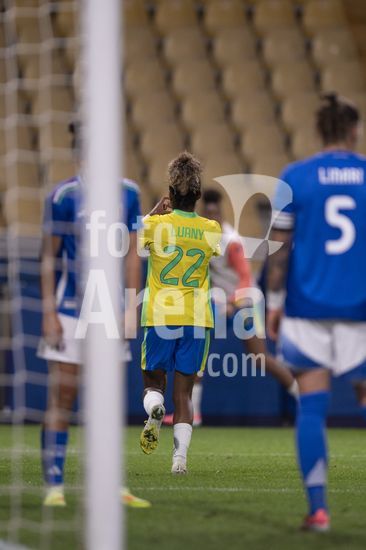 2832087 Luany do Brasil imediamente antes que marcar gol durante amistoso da Seleção Brasileira Feminina contra a Seleção da Italia realizado no Estádio Ennio Tardini, em Parma Italia, nesta terça-feira, 28. (João Brandino/Sports Press Photo)