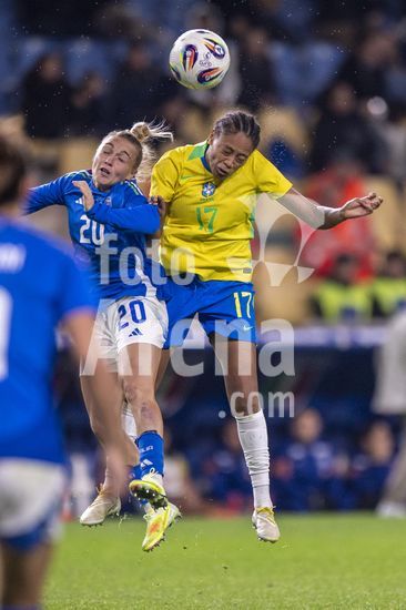 2832098 Giada Greggi da Italia e Ary Borges do Brasil durante amistoso da Seleção Brasileira Feminina contra a Seleção da Italia realizado no Estádio Ennio Tardini, em Parma Italia, nesta terça-feira, 28. (João Brandino/Sports Press Photo)