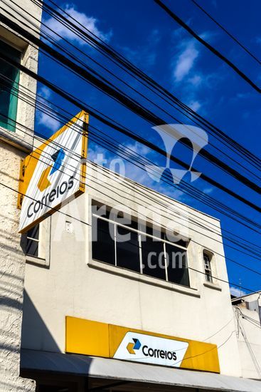 2867682 Fachada de uma agência dos Correios, a Empresa Brasileira de Correios e Telégrafos, localizada na zona sul da cidade de São Paulo, Brasil. A imagem destaca o logotipo da estatal em um dia de céu azul, contrastando com a fiação elétrica exposta, uma característica comum na paisagem urbana de muitas cidades brasileiras. Como instituição fundamental para a logística e comunicação nacional, os Correios desempenham um papel vital na distribuição de correspondências e encomendas em todo o território, e suas agências são pontos de referência essenciais na infraestrutura de serviços do país.