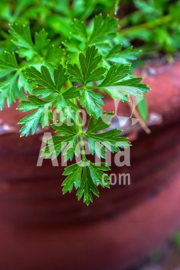 2871104 A salsinha, também conhecida pelo seu nome científico Petroselinum crispum, é uma das ervas aromáticas mais populares e utilizadas na culinária brasileira, plantada no vaso da horta de um condomínio de prédios na cidade de São Paulo. Esta imagem em close-up revela a textura e a cor vibrante de suas folhas crespas, que são ricas em vitaminas A, C e K. Nativa da região do Mediterrâneo, a salsinha adaptou-se perfeitamente ao clima do Brasil, sendo cultivada em hortas domésticas e em larga escala por todo o país. Além de ser um ingrediente essencial no preparo do "cheiro-verde", juntamente com a cebolinha, ela é usada para temperar e decorar uma infinidade de pratos, como saladas, sopas, carnes e molhos. Do ponto de vista botânico, é uma planta herbácea da família Apiaceae, que pode ser cultivada como anual ou bienal. Seu sabor fresco e levemente picante a torna indispensável na cozinha, agregando não apenas sabor, mas também valor nutricional aos alimentos.