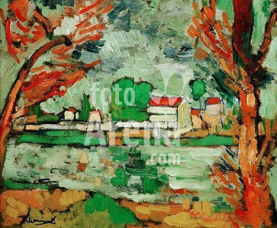 akg995161 Vlaminck, Maurice de 1876-1958. "Vue de Chatou" (Blick auf Chatou), 1906. Öl auf Leinwand, 54 x 65 cm. Museum: Private Collection., Privatsammlung.