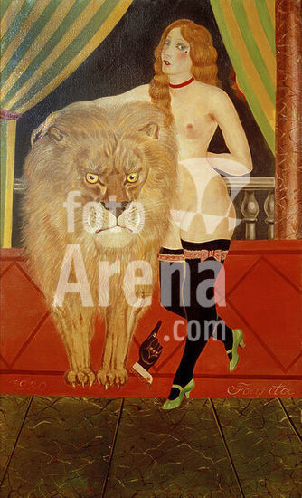 akg941479 Foujita, Tsugouharu 1886-1968. "La Dompteuse et le lion" (Dompteuse und Löwe), 1930. Öl auf Leinwand, 147 x 91 cm. Inv.Nr.8279. Museum: Musée du Petit Palais., Genève.
