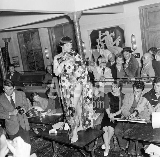 akg1029312 Künstler / Künstler und Modell.-Modellwettbewerb in einem Restaurant in Montparnasse (Paris, Frankreich); im Hintergrund Tsugouharu Foujita, Marianne Oswald und Gerard Philipe.-Foto, 1952.