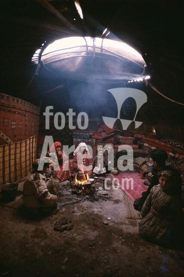 akg1573929 Völkerkunde / Kirgisen (Turkvolk in Zentralasien). /-Kirgische Nomaden im Wakhan-Korridor im Pamir-Gebirge im Nordosten Afghanistans, Provinz Badachschan: Kirgisen in ihrer Jurte.-/ Foto, September 1967.