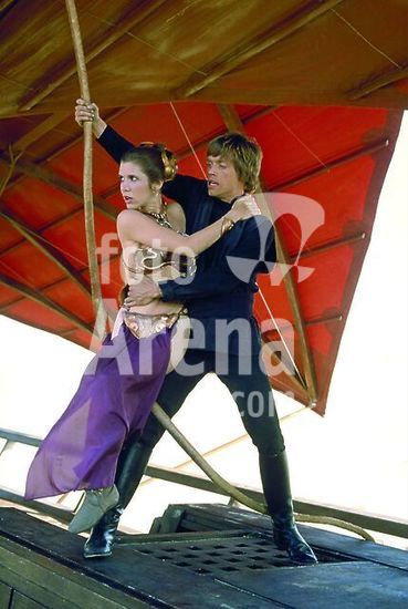 alb477680 CARRIE FISHER and MARK HAMILL in EL REGRESO DEL JEDI (1983) -Original title: STAR WARS: EPISODE VI-RETURN OF THE JEDI-, directed by RICHARD MARQUAND. English title: BLUE HARVEST. Portuguese title: O RETORNO DE JEDI.