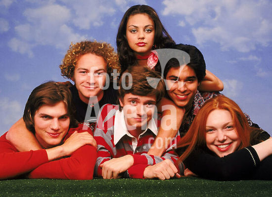 alb2095467 ASHTON KUTCHER, MILA KUNIS, TOPHER GRACE, MASTERSON, DANNY, LAURA PREPON and WILMER VALDERRAMA in AQUELLOS MARAVILLOSOS 70-TV (1998) -Original title: THAT '70S SHOW-TV-. English title: THAT '70S SHOW.